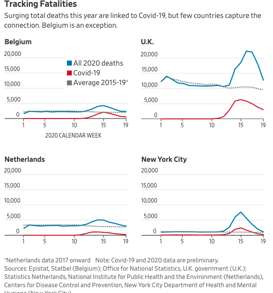 May. 28th, 2020 07:41 amВот и нашлось объяснение, почему в Бельгии такая высокая смертность от ковид-19: они просто аккуратно посчитали трупы! Когда поступила статистика смертности среди населения за первые четыре месяца года, оказалось, что соответствие очень близкое. В отличие от Британии и Нью-Йорка...